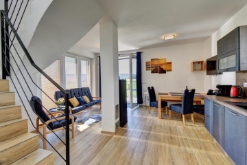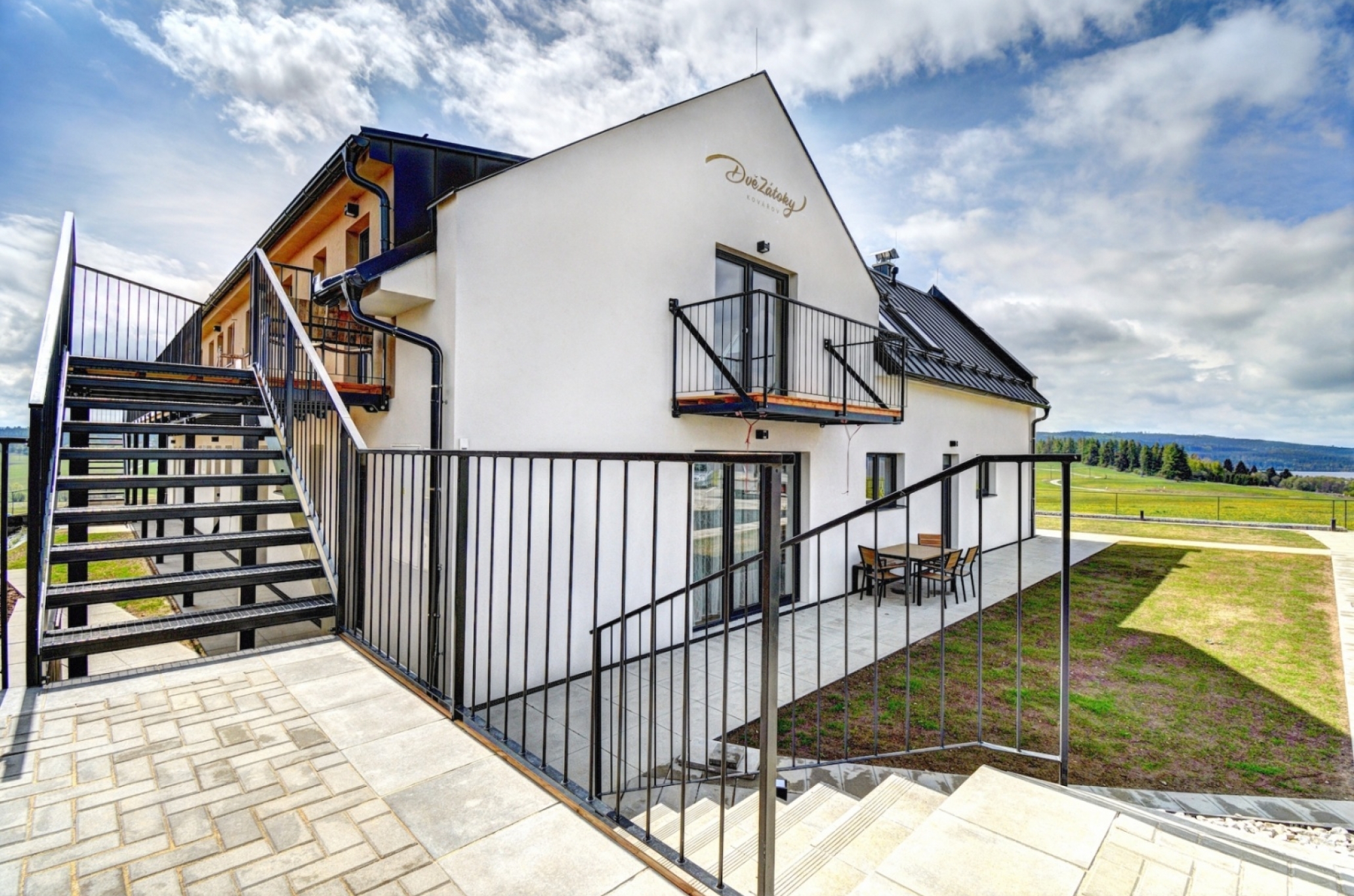 Kouzelná dovolená na Lipensku? Vyřešeno. Apartmány Dvě zátoky v Kovářově vám otevírají svou pětihvězdičkovou náruč. Každý z apartmánů je vybaven v jedinečném stylu a má výhled přímo na přehradu. Ať už si vyberete dispozici 1+kk, 2+kk nebo 3+kk s mezonetem, vždy získáte efektivně řešený a luxusně vybavený prostor. K tomu terasu s posezením a zdarma parkovací stání, úschovnu kol či lyží. A největší luxus? Soukromá pláž do 5 minut pěšky od domu.