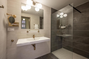 V parkovací garáži jsou také nabíjecí stanice pro elektromobily. Vedle 2 rychlonabíječek DC s výkonem 50 kW je pro elektromobily hostů k dispozici až 6 nabíječek AC.