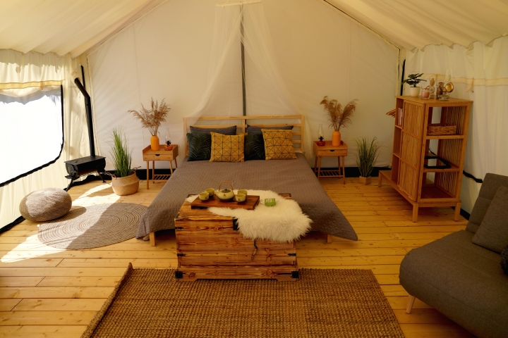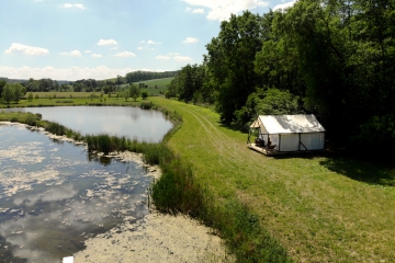 Utečte od všech povinností, stresů, neodbytných e-mailů i zpráv a užijte si nezapomenutelnou dovolenou na Jižní Moravě! Glamping Slovácko dává dovolené pod stanem zcela nový rozměr. Žádná elektřina ani wi-fi, ale pouze zpěv ptáků, šumění lesa a šplouchání rybníčku. Kouzlo glampingu si zamilují páry hledající dokonalou romantiku i rodiny s dětmi. Abyste se pohodlně všichni vešli, je připravena manželská postel a dvě přistýlky a přivítají tu i vašeho domácího mazlíčka. K dispozici je ohniště s grilem, kotlík, hvězdářský dalekohled a dvě houpací sítě, zdarma vám půjčí i kola.