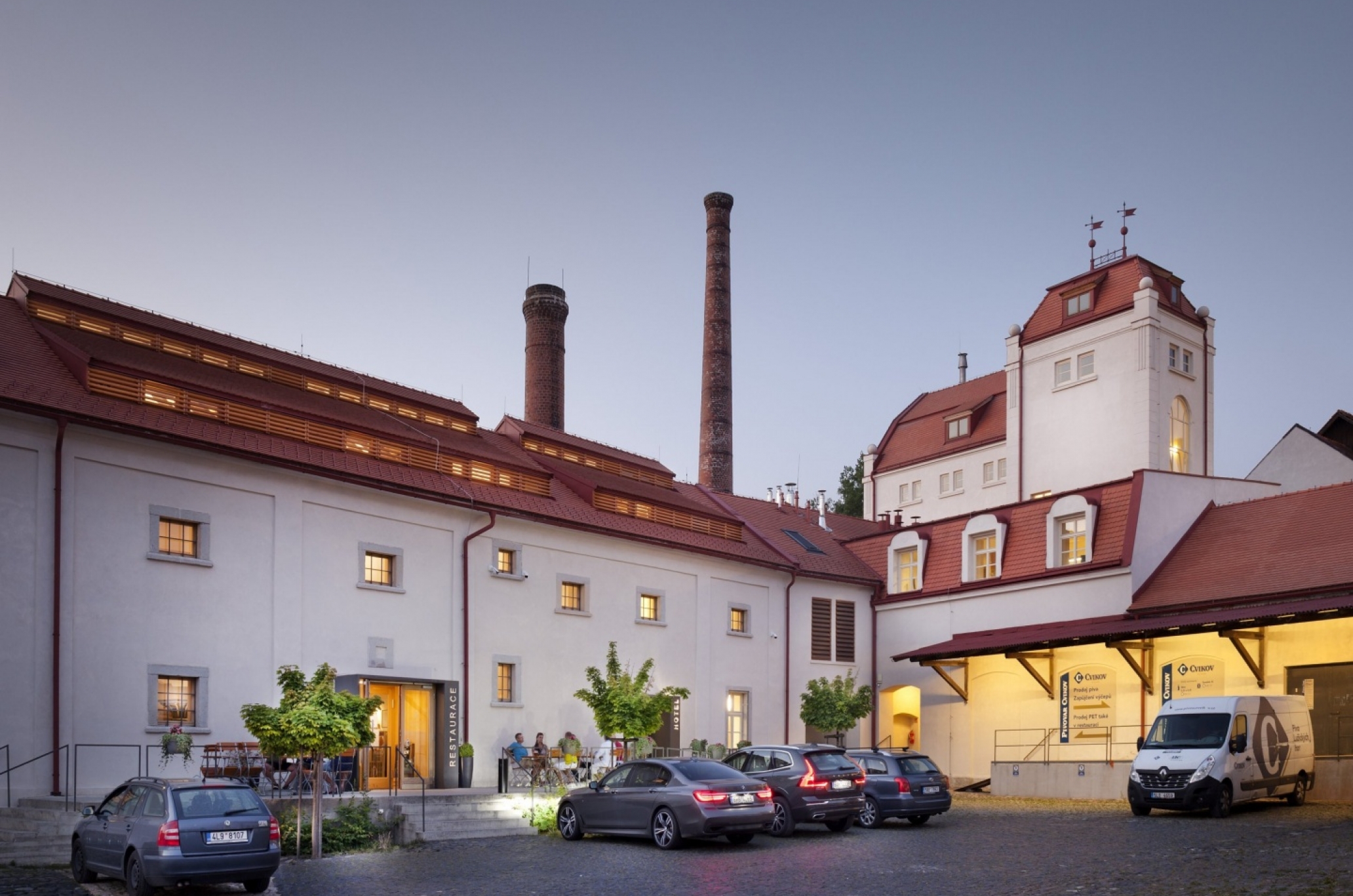 Ubytování v malém pivovarském areálu.