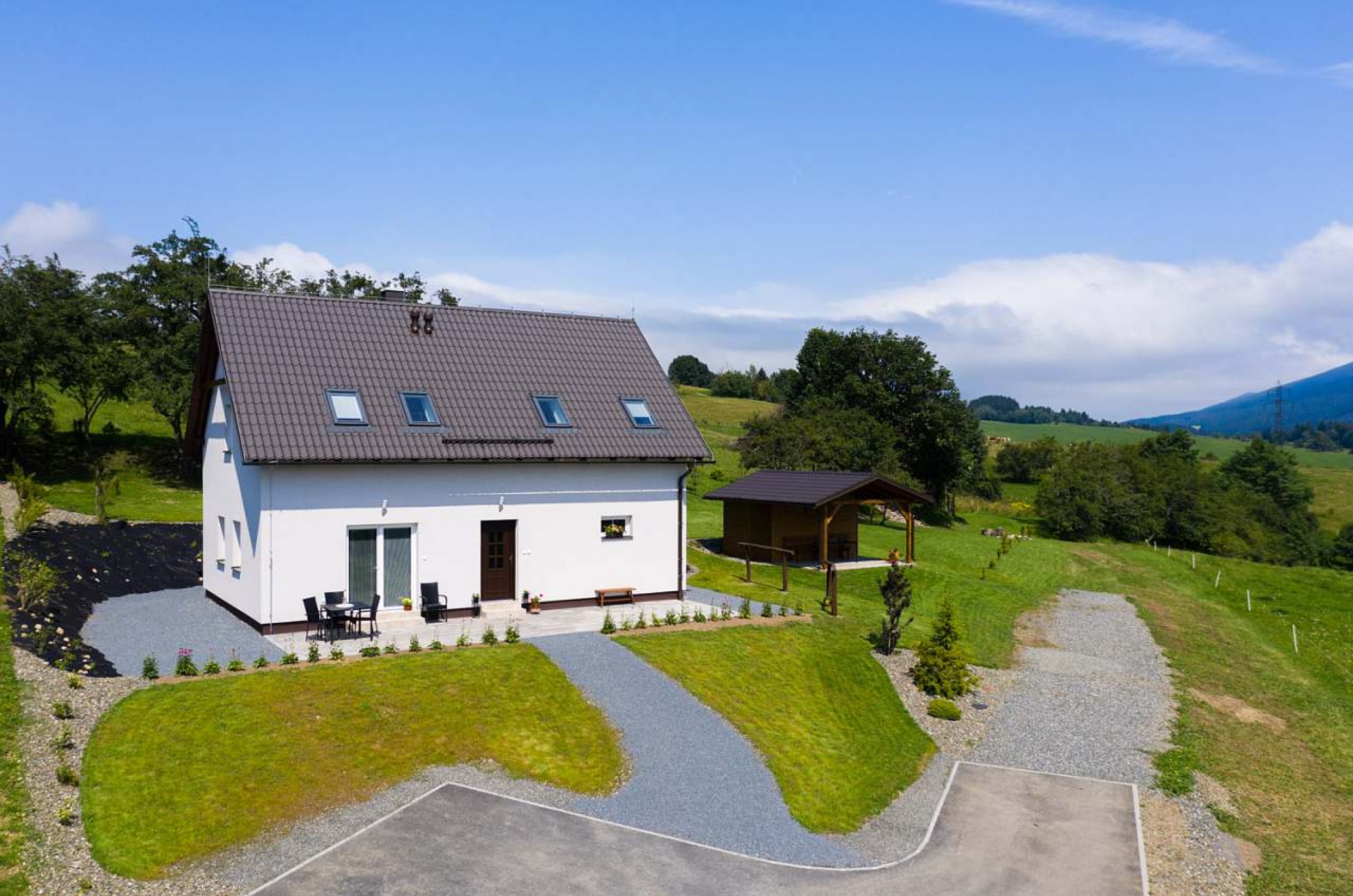 Dům je zařízen v moderním stylu s nádechem romantiky dotažený vkusnými detaily. Obdobně je na tom okolí domu, které navazuje a splývá s tamní přírodou. Velice klidné místo v přírodě s překrásným výhledem na okolní krajinu. Idylka nabízí příjemný pobyt pro všechny generace a to ve všech ročních obdobích. Pohybové vyžití je v Branné a okolí opravdu široké a pestré. Je ideálním výchozím bodem pro milovníky zimních sportů, tak i letní turistiky nebo cykloturistiky.