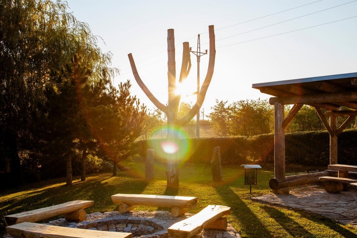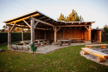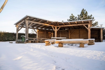 Přímo u rybníka se nachází srubové posezení s ohništěm.