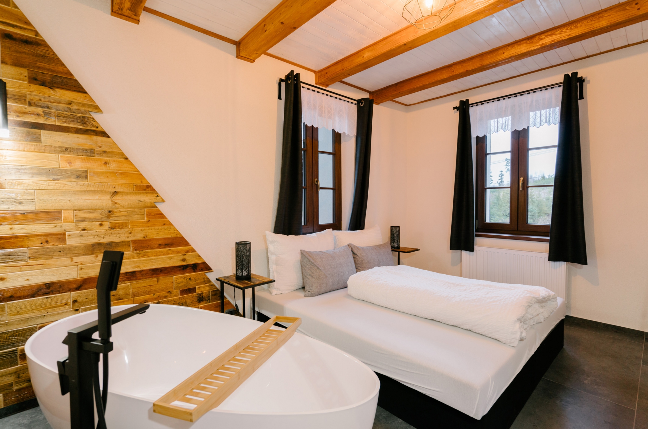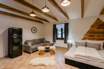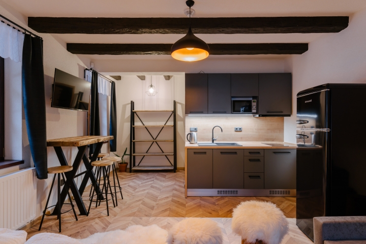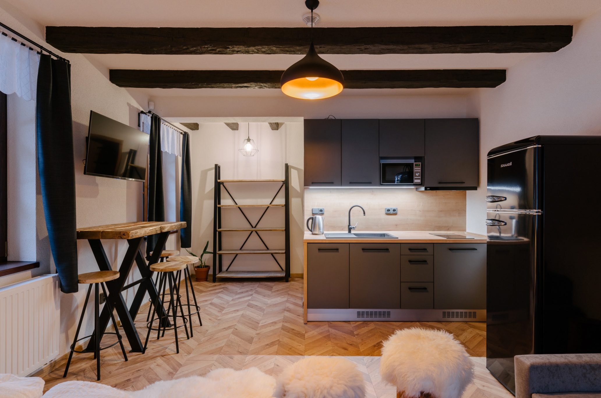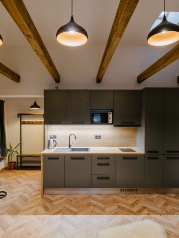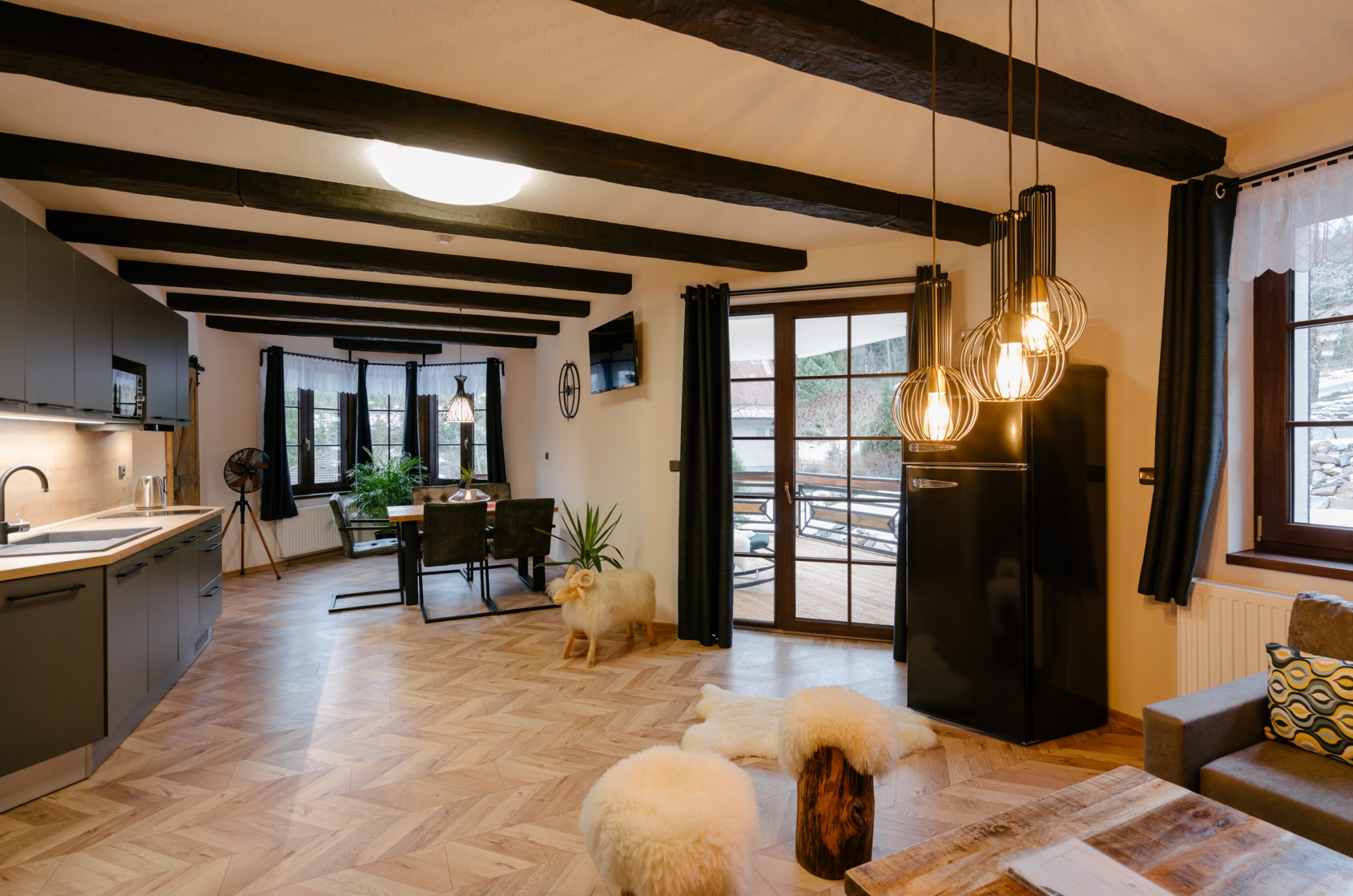 Moderní design s prvky dřeva i industriálních detailů, který skvěle zapadá do hor v Moravskoslezském kraji. Vše voní novotou a čistotou