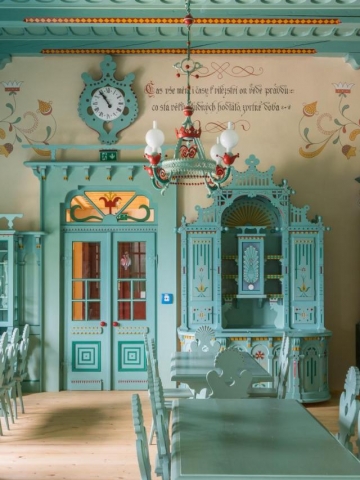 Pustevny. Historická památka. V Libušíně si určitě dejte kyselicu, nebo cokoli, protože tu skvěle vaří. Naprosto ojedinělý interiér. Krása. Maměnka je plná rukodělných výrobků od místních šikovných řemeslníků. Koberce, doplňky, dekorace, perníčky, které najdete na posteli aj. Pro někoho to může být trochu kýč, ale krásný kýč. Zážitek už je to, že tu vůbec můžete spát. Pustevny jsou skvělé na výlety, můžete si půjčit elektrokola, vyrazit za Radegastem, nebo na Stezku Valaška. Buďte připravení, po check-inu už nemůžete řídit. Tady jste v Moravskoslezském kraji.