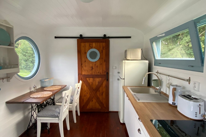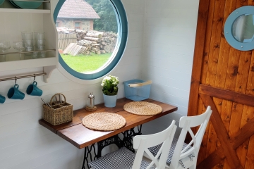 Maringotka Nebeská se nachází v jižních Čechách, nedaleko města Tábora, v těsné blízkosti Chýnovské jeskyně. Pokud hledáte klid, pohodu, romantiku a pohodlí, je Nebeská to pravé místo. K dispozici je i vyhřívaný venkovní koupací sud. V maringotce je vybavený kuchyňský kout, pokud ale nechcete o dovolené vařit, můžete využít restauraci v nedalekém penzionu Pacovka.