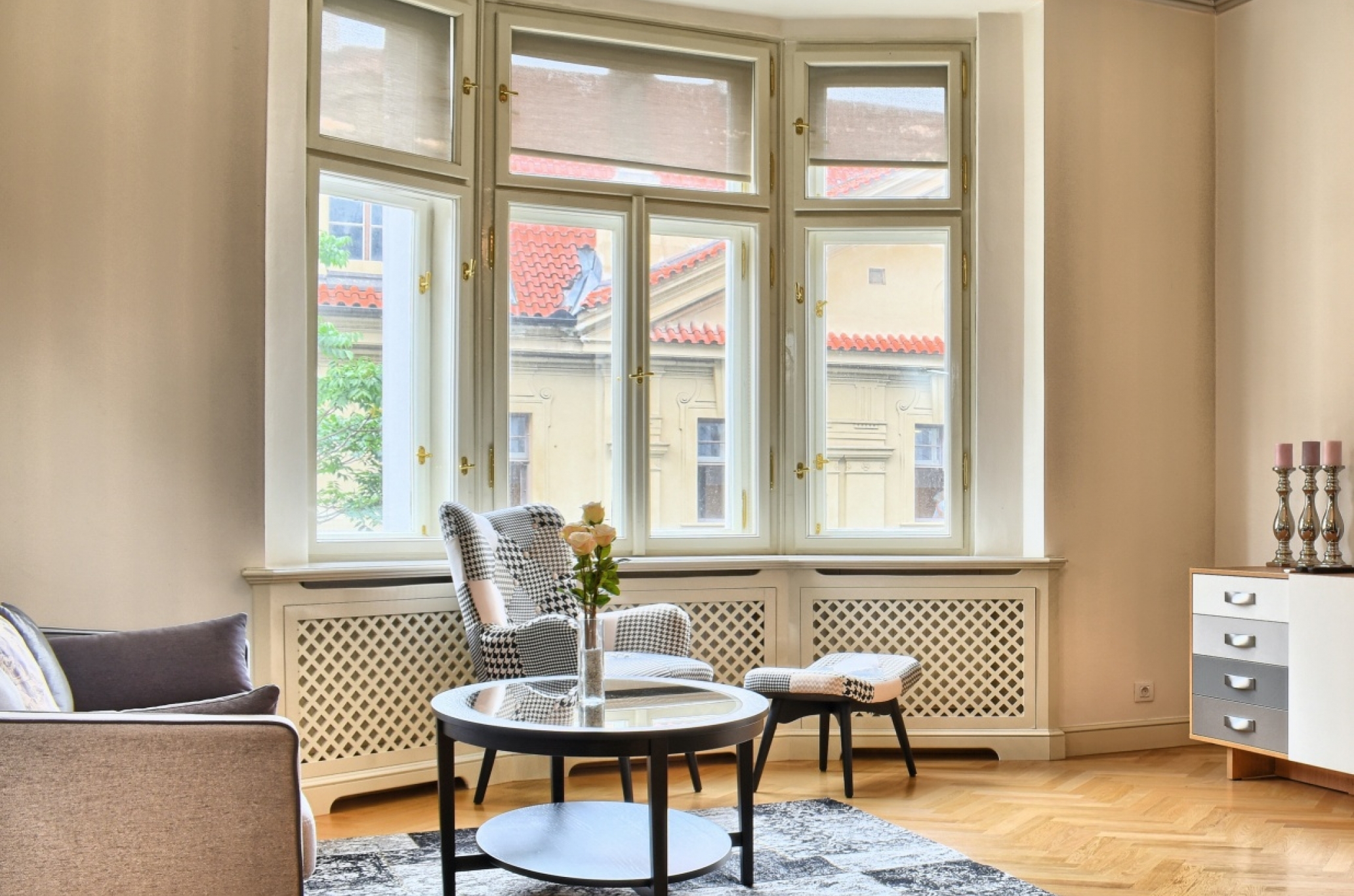 Apartmány Milosrdných leží snad v nejklidnější části Starého Města pražského. Všechny ložnice jsou orientovány do dvora, zatímco okna obývacího pokoje mají výhled na kostel sv. Šimona a Judy. Celá budova a všechny byty byly zrekonstruovány na špičkový standard. Užijete si tu maximální pohodlí na úrovni. Všechny apartmány jsou klimatizované. Mají velmi světlý obývací pokoj, kde najdete chytrou televizi s pohovkou a pracovním stolem - ideální výbava pro byznysmany. Nabízí také dvě krásné ložnice s pohodlnými královskými postelemi velikosti a spoustou úložného prostoru. V kuchyni jsou všechny spotřebičů pro příjemný zážitek z vaření.