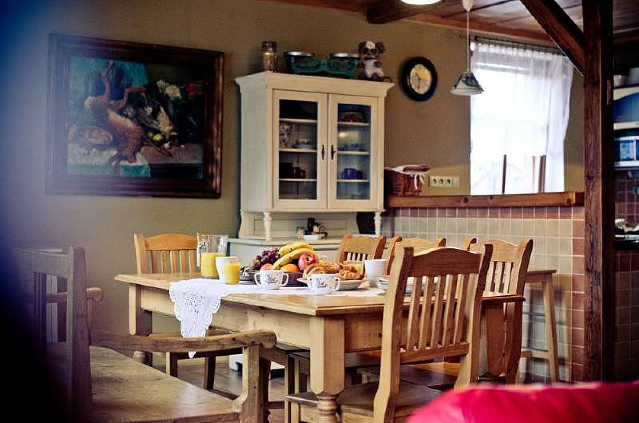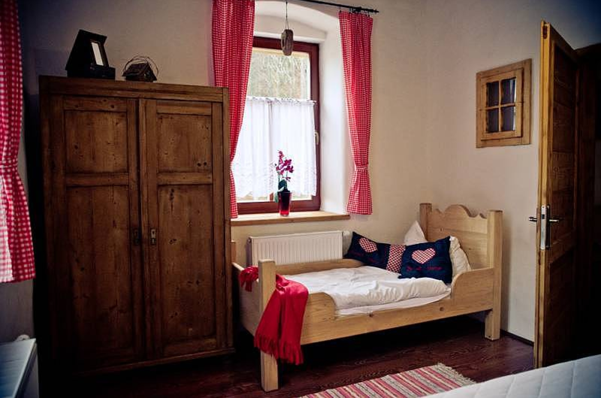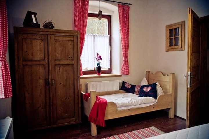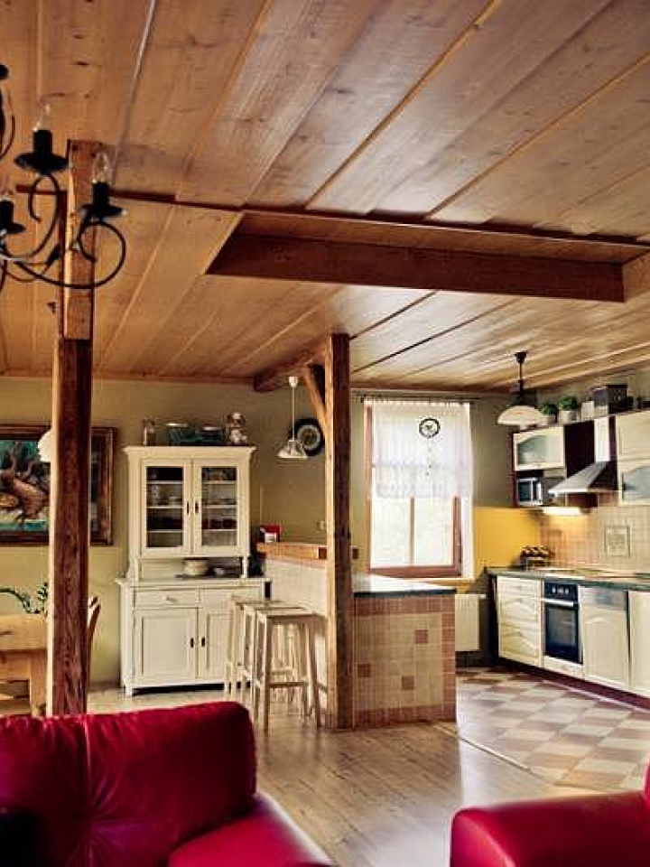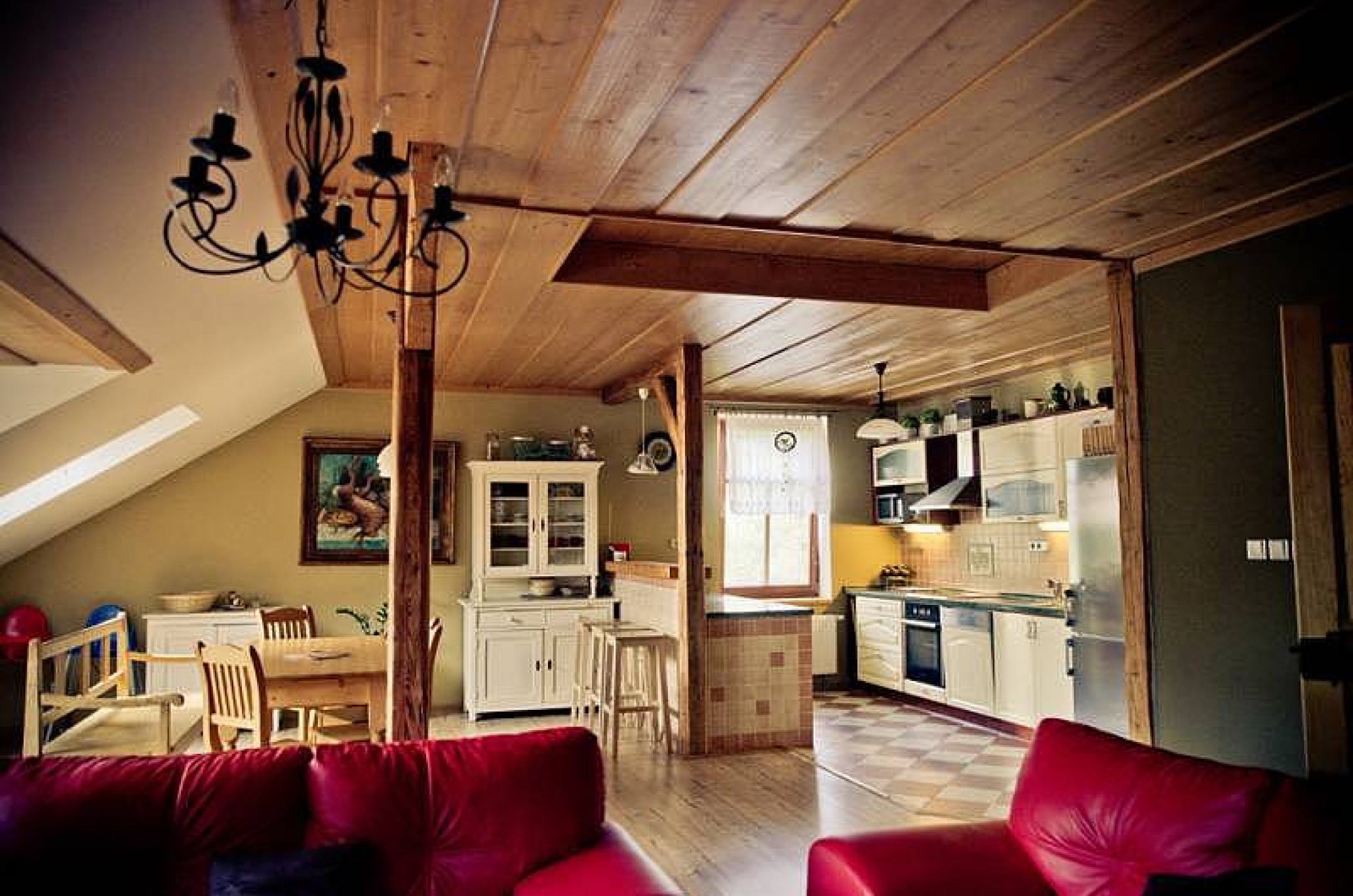 Nově zrekonstruovaná, prostorná chalupa v selském stylu. V létě Vás potěší zahradní bazén, dětské prolézačky v oplocené zahradě, krytá terasa s ohništěm a grilem a posezení u venkovního krbu. Milovníci přírody a aktivního odpočinku jistě využijí hustou síť značených turistických tras pro pěší i cyklisty. Okolí nabízí řadu možností pro aktivní trávení volného času v krásné horské přírodě. V zimě oceníte jak upravované běžecké trasy, tak blízkost sjezdovek. Chalupa je plně vybavená k bydlení rodin s dětmi nebo skupiny přátel o počtu 20 - 23 osob v šesti ložnicích. elká společenská místnost s krbem a nadstandardně vybavenou kuchyní zajistí teplo, klid a pohodu při odpočinku. Děti si pohrají v útulné herně.