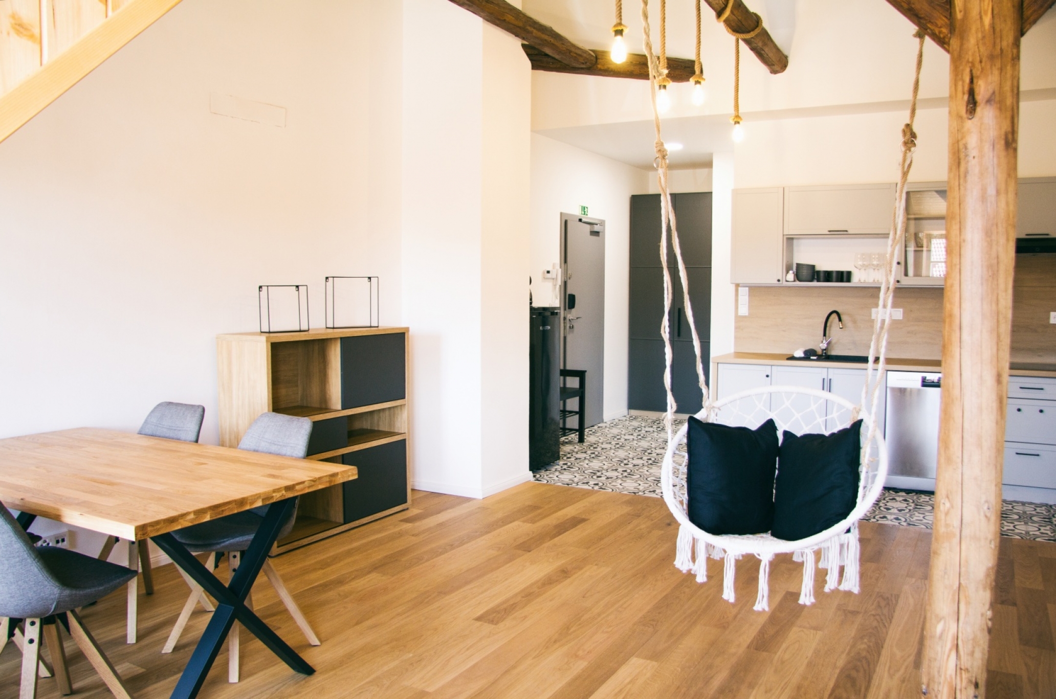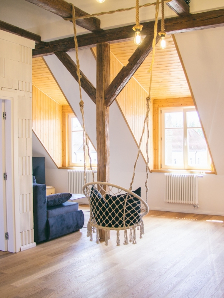 Opravdu krásné ubytování s krásným výhledem i s houpačkou na pokoji.