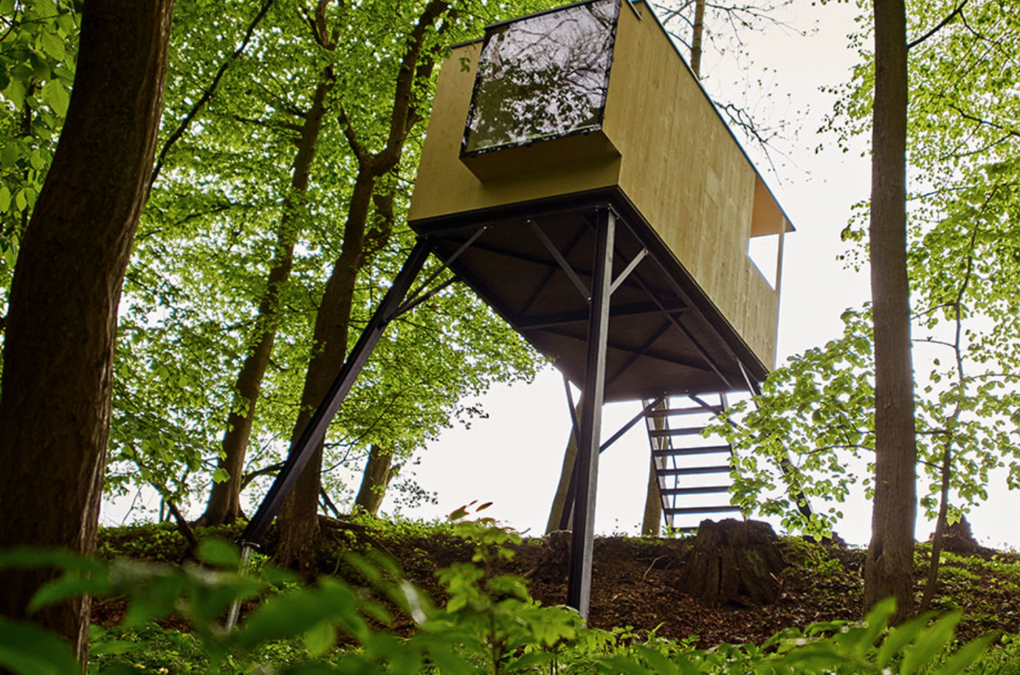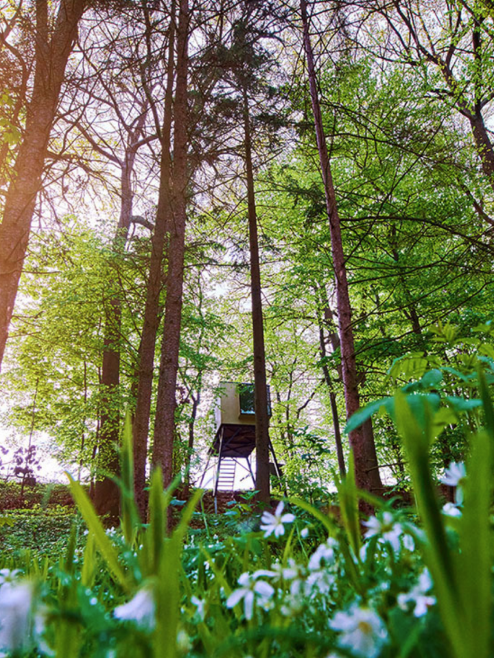 Posed Lišák stojí na hraně louky ukryt ve větvích smíšeného lesa. Proskleným oknem hledí ze srázu na meandr potoku Běluňka. Samotné dobrodružství pobytu v posedu začíná již výstupem po schůdcích do výše než dvou metrů. V interiéru pak najdete ukázku glampingu v malém prostoru, kterému dominuje velké okno a pohodlná postel. Součástí otevřeného prostoru je i minikuchyňka vybavena ledničkou, plynovým vařičem a základním vybavením pro přípravu malého občerstvení. Osobní hygiena se ve Lišákovi nese v tradičním kempovém duchu. V interiéru je k dispozici umyvadlo, do něhož si můžete ohřát vodu, sprchování je pak možné z vaků na vodu zavěšených u posedu. Suchý záchod je ukryt mezi stromy. Není zde žádný Wi-Fi signál ani připojení na elektřinu. Vraťte se do dětství třeba s knížkou pohádek nebo nad nějakou z her.