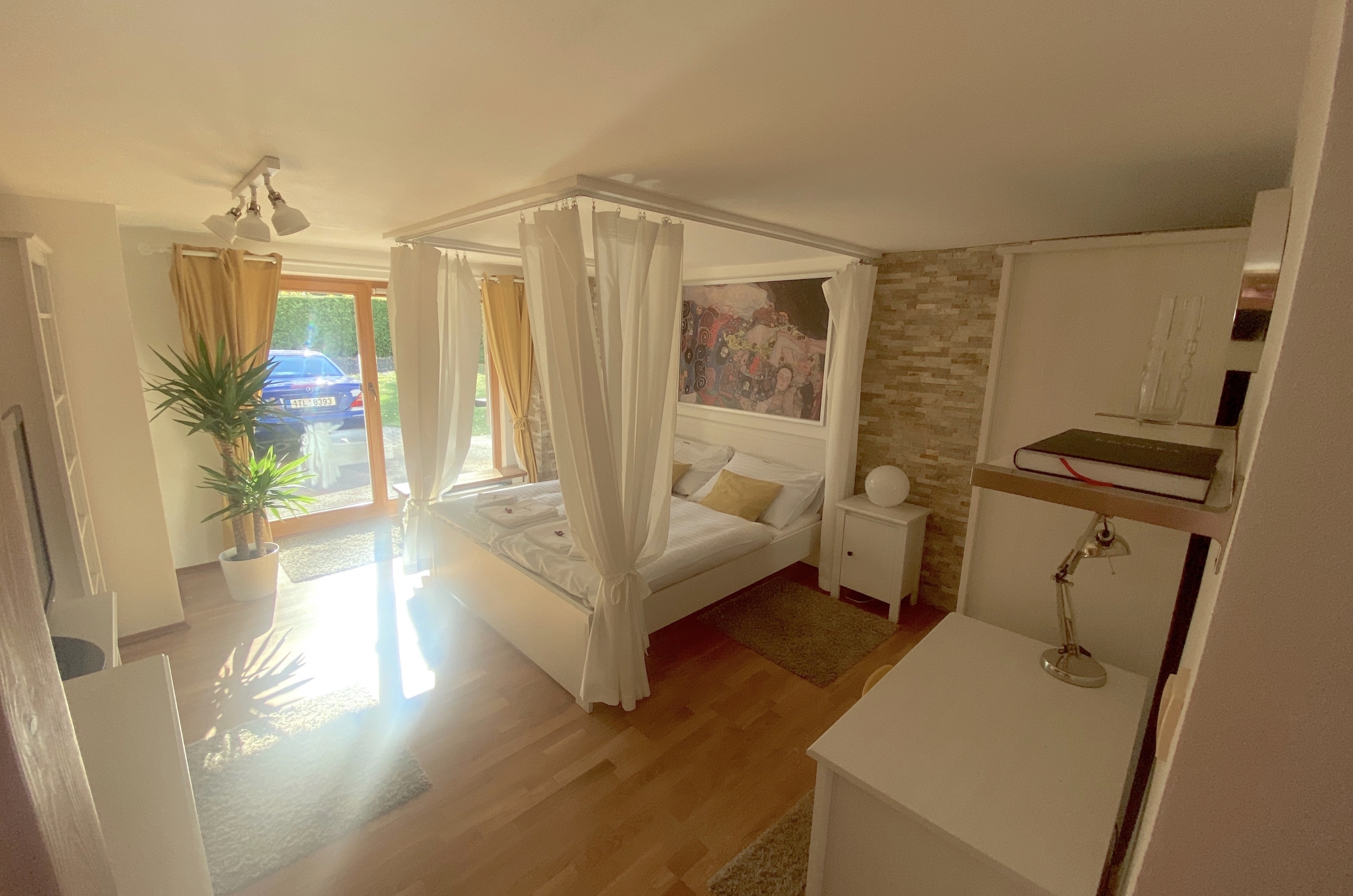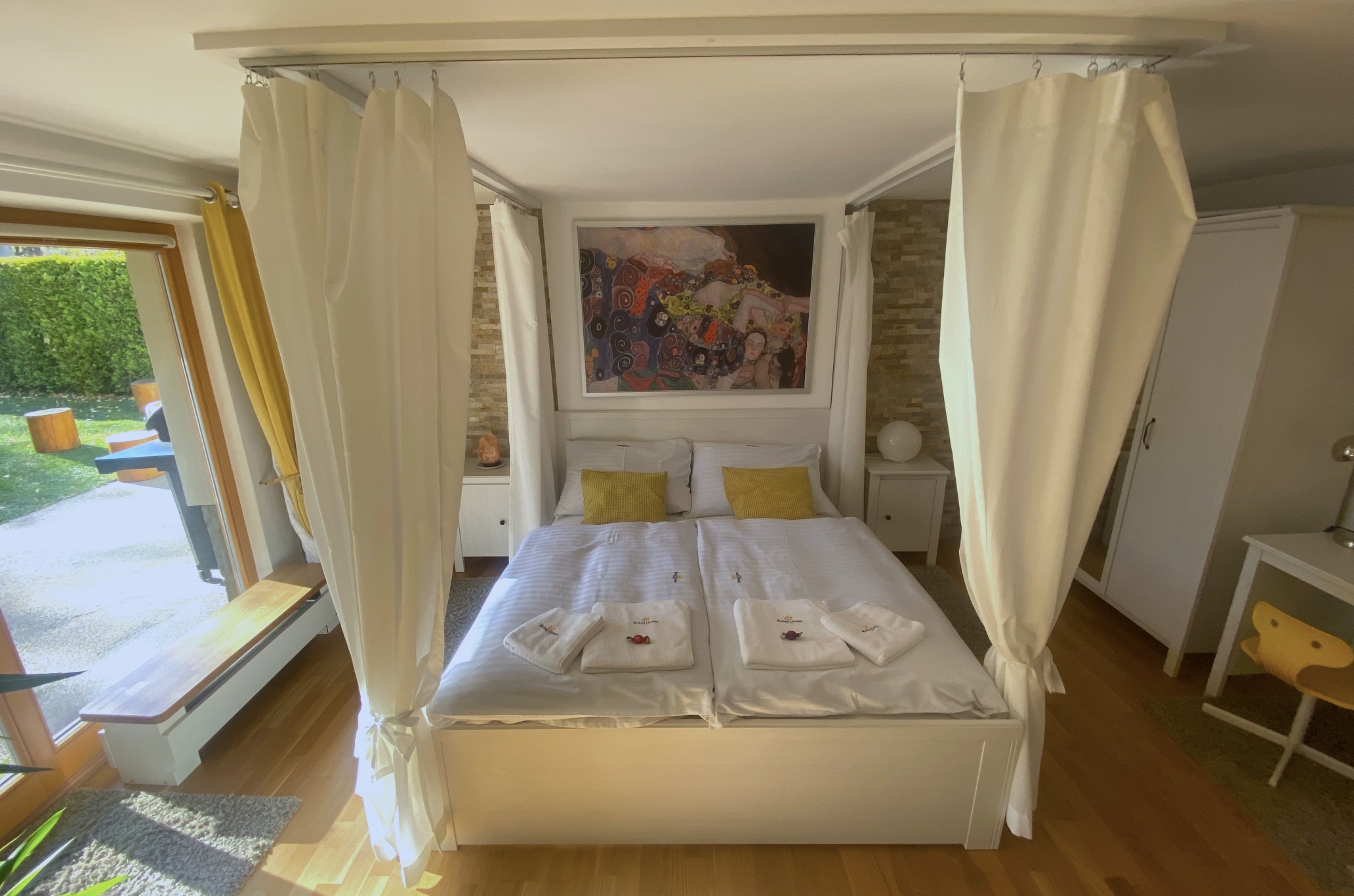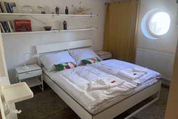 Rebel House je luxusní apartmán pro 1–8 osob na 71 m2 se zastřešenou terasou a oplocenou zahradou. Najdete ho uvnitř zrekonstruovaného rodinného domu v bruselském stylu z konce 60. let 20. století. Přímo na jeho jižní straně je praktická kamínková terasa s krytou pohovkou, dvěma lehátky a závěsným křeslem. Večerní pohodu vám zpříjemní plynový gril. Děti mohou v klidu řádit na venkovním dětském hřišti s pískovištěm a patrovým domečkem pro malé piráty. Útulný přízemní apartmán o třech ložnicích vás osloví promyšlenými vstupy na terasu. Nadchne vás i příjemné posezení, dále kuchyně s pracovním ostrůvkem, před níž je umístěn rozkládací jídelní stůl až pro 6 strávníků. Koupelna je laděná do žluté, má prostornou vanu se skleněnou zástěnou pro sprchování. WC je oddělené samostatně.
