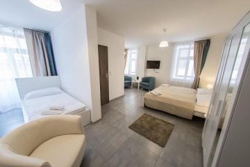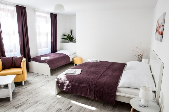 Tři typy ubytování. Mužete si vybrat apartmán s kuchýňskou linkou anebo pokoj hotelového typu.