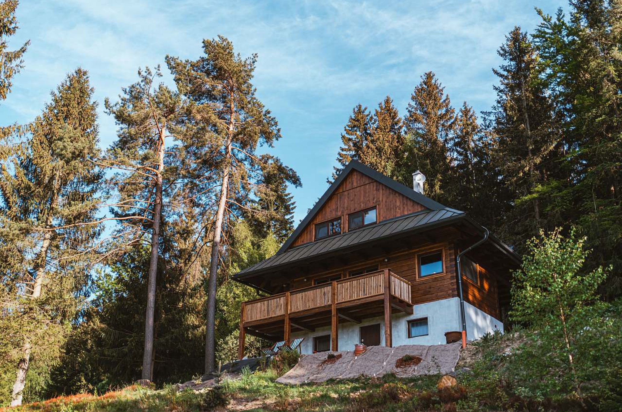 Roubenka se nachází na samotě na hranici lesa. Na ohništi si opečete buřty. Ke snídani, na sluncem zalité terase, si můžete nasbírat borůvky.