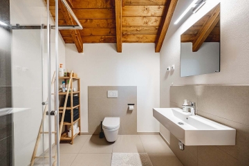 V patře se nachází 4 ložnice. Koupelna i záchod jsou v obou patrech.