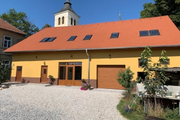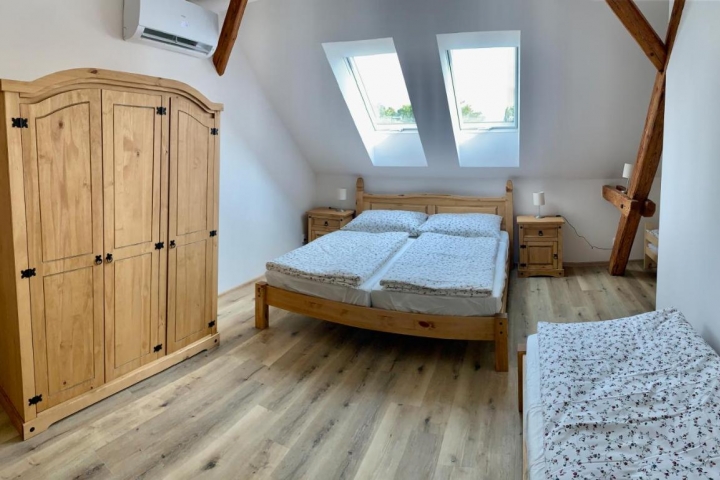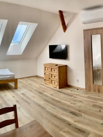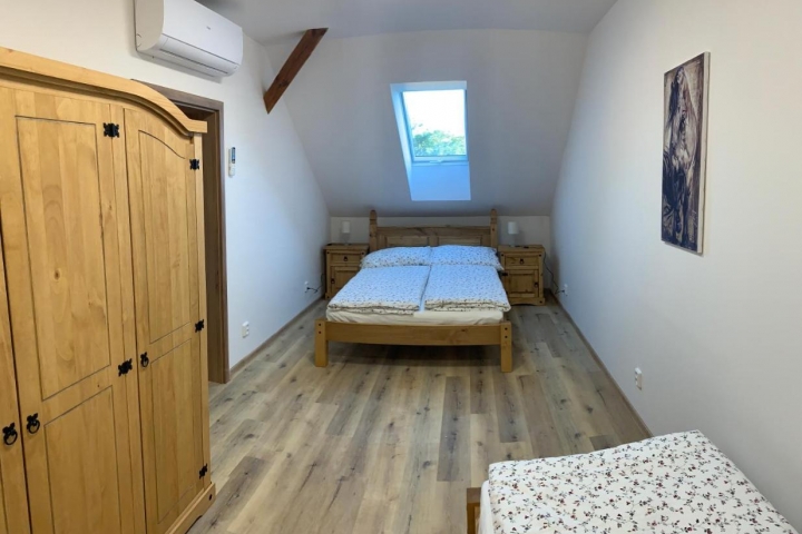 Apartmány jsou situovány v 1. patře zrekonstreuovaného objektu stodoly na koňském statku. V budově se nacházejí dva plně vybavené apartmány o velikosti 2+kk 70 m2. V přízemí objektu se nachází studio 1+kk 80 m2. K dispozici je venkovní posezení s grilem. Možné je uschovat jízdní kola v uzamykatelné garáži. Pakování je možné přímo v objektu statku. Je zde možné domluvit výuku jízdy na koních, či vyjížďky do přírody. Nachází se na okraji Brdských lesů s krásnou přírodou, ideální pro cykloturistiku, vyjížďky na koních, či běžnou turistiku. V docházkové vzdálenosti se nachází město Hostomice s veškerou občanskou vybaveností a pivovarem.