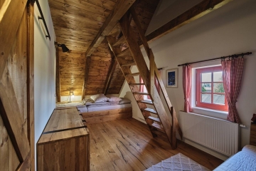 Velký apartmán disponuje celkem 3 ložnicemi (2+3+3) s jedním dalším lůžkem na peci. Malý apartmán disponuje 1 ložnicí se 4 lůžky a dalšími 2 na hambálku.