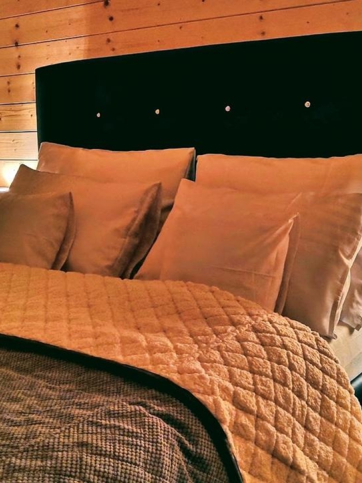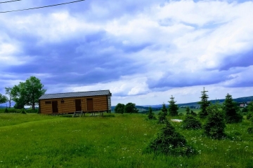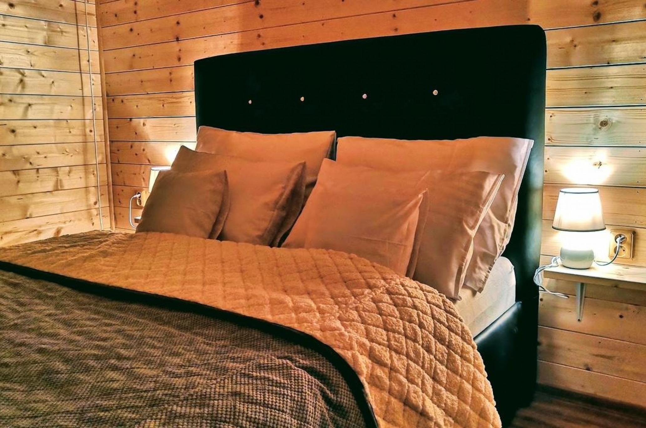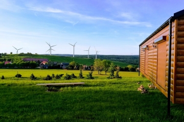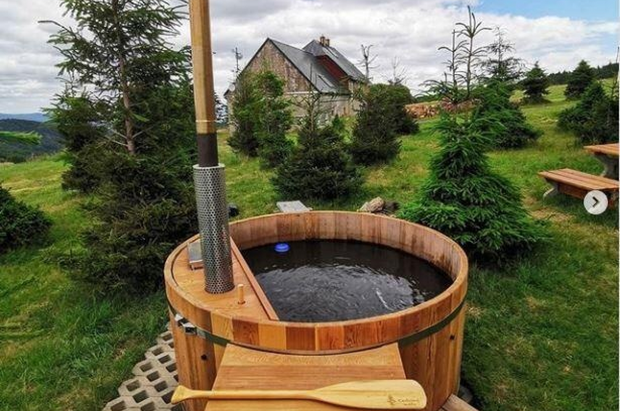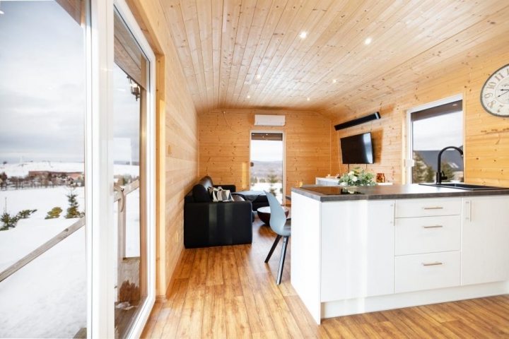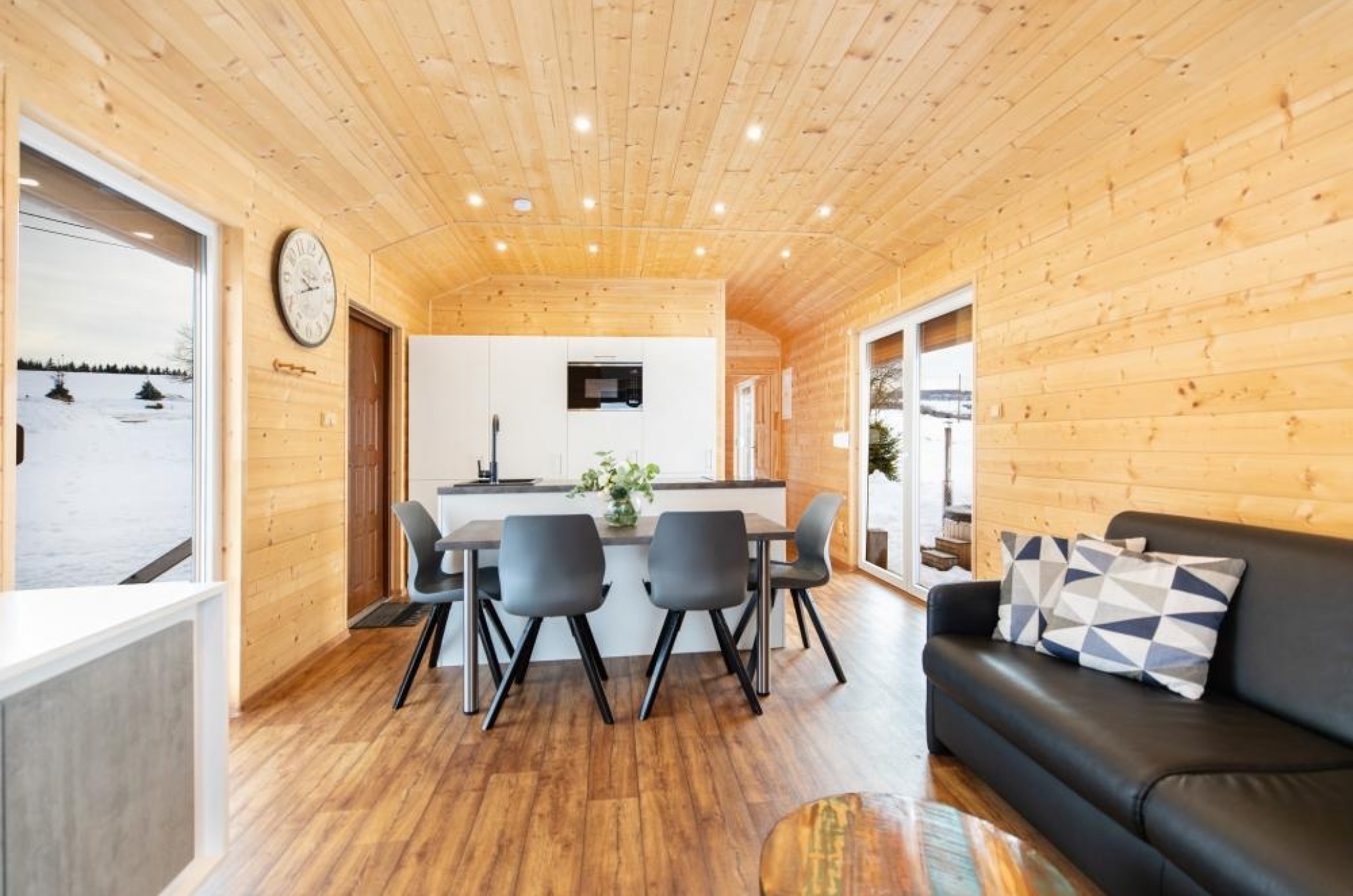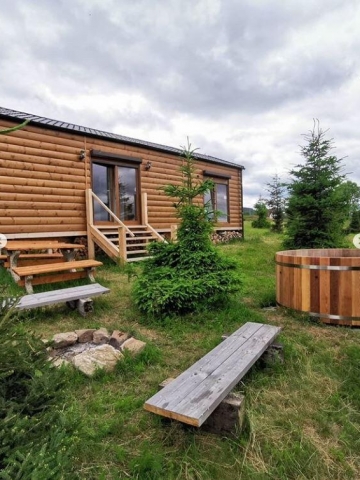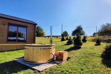 Určitě vás uchvátí velká okna s výhledem do přírody a super venkovní vyhřívaný sud na koupání.