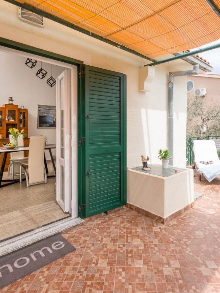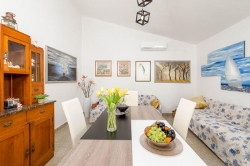 Tato krásná samostatně stojící vila poskytuje hostům úplné soukromí. Nachází se v centru města Sevid a je jen 50 metrů od moře. Dům se nachází na velkém prostorném pozemku s mnoha olivovníky a různou zelení a je vhodné pro rodiny s dětmi. Za zmínku stojí krásný výhled na moře. Dům má dvě ložnice, velký obývací pokoj s plně vybavenou kuchyní, koupelnu se sprchou, velkou terasu, kryté parkování a velkou zahradu. K vybavení patří gril, WIFI, klimatizace, satelitní TV.