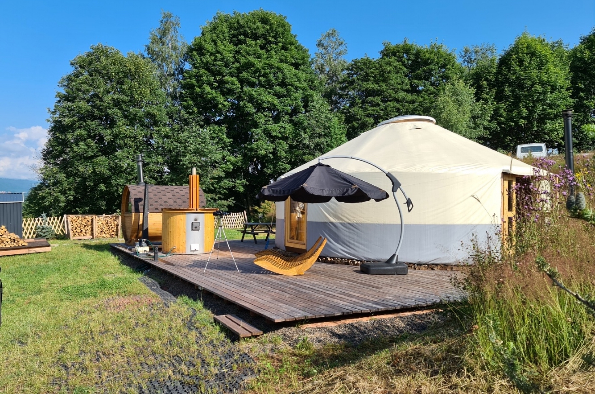 Zpátky ke kořenům! Návrat do panenské přírody, harmonické bytí v souladu s okolím, útěk od uspěchaného života ve městě. To vás čeká v unikátní jurtě, která se ukrývá v lesích na pomezí Krkonošského národního parku a Adršpašských skal. V okolí se nachází pouze dva další objekty, jinak jen vy a příroda. Ubytuje se v ní až 6 osob. Svůj vzhled i poslání čerpá z tradičních obydlí mongolských kočovných kmenů. Konstrukce je ze dřeva a izolace z přírodních materiálů, jako je ovčí vlna nebo konopí, zajišťuje teplo i v mrazivých zimních dnech. A díky nedaleké biofarmě si navíc pochutnáte na produktech lokálních hospodářů a zemědělců. Zpomalte svůj život a osvoboďte svou mysl na místě, kde na vás dýchá klid a souznění s českými luhy a háji. Za odměnu si pak večer můžete vykouzlit letní kino nebo si dopřát relax v sauně a finských lázních. Všechno tu je!
